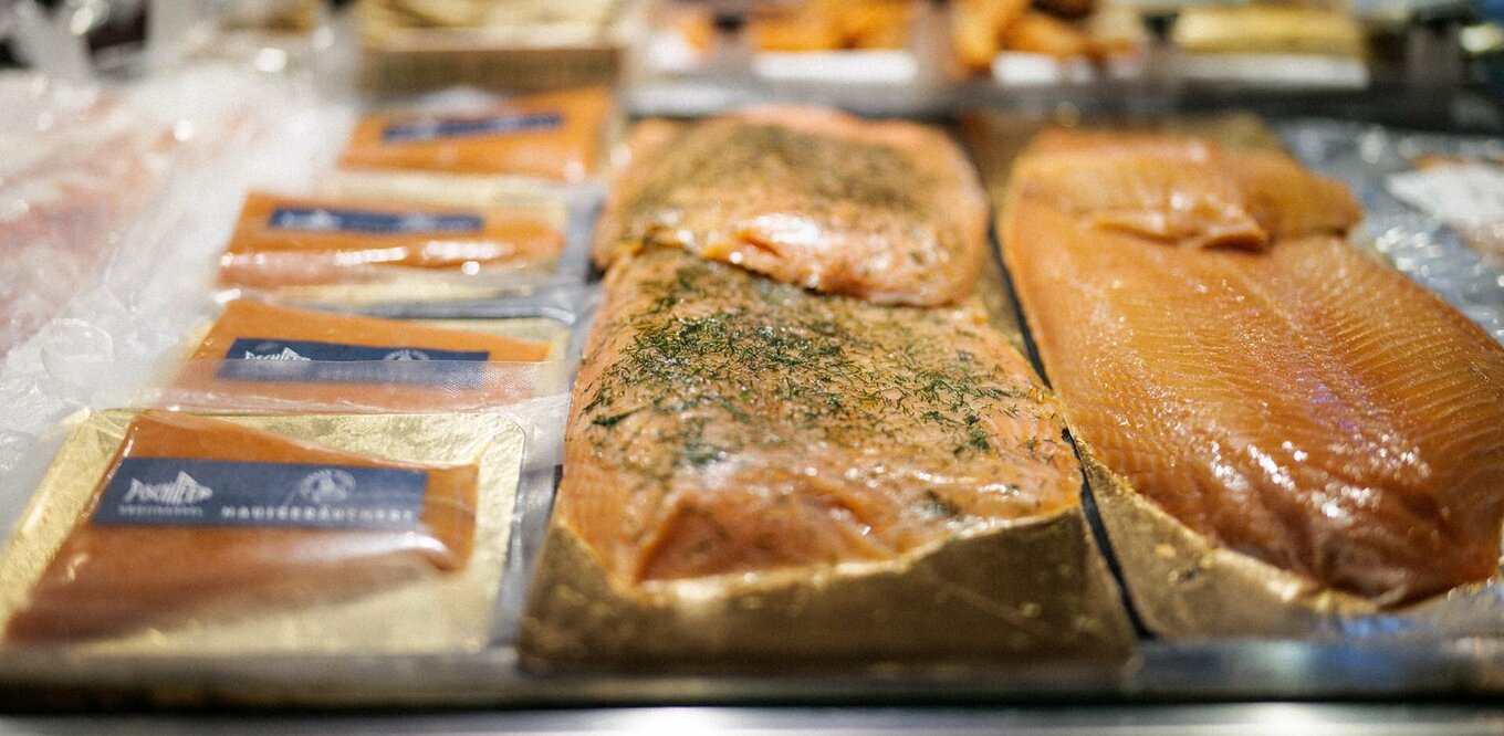 Das wohl wichtigste Einzelprodukt bei Fisch Peer ist unser Räucherlachs aus unseren eigenen Zirbenöfen. Wir bereiten einen schmackhaften Lachs für Ihr Frühstücksbuffet zu, der auch preislich passt: vorgeschnitten, vakuumiert, verzehrfertig und mit Hand trocken gesalzen in Tirol. Den Räucherofen dafür, einen Schwelofen mit Seitenwänden aus Zirbenholz mit externem Raucherzeuger, in dem bis zu 150 Lachsseiten Platz finden, hat unser Geschäftsführer Josef Peer, gelernter Schlosser, selbst gebaut. In den insgesamt mittlerweile zwei Öfen können in 24 bis 36 Stunden 300 Seiten geräuchert werden. Somit sind wir in der Lage, in einer Woche fast eine Tonne Räucherlachs herzustellen. Ergänzend wird ein Graved-Lachs produziert, damit Sie bei Ihrem Frühstückbuffets nach Wunsch beide Varianten anbieten können.