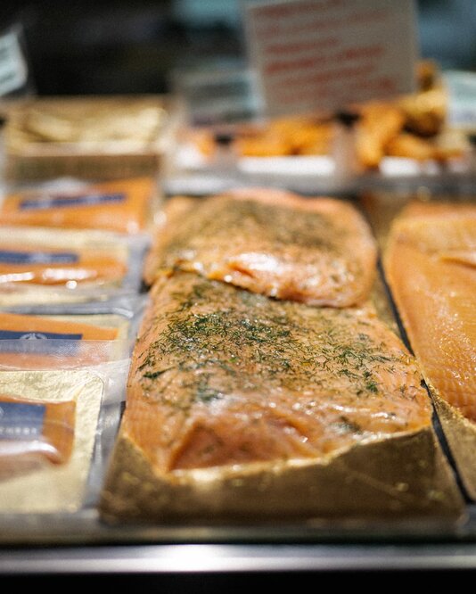 Das wohl wichtigste Einzelprodukt bei Fisch Peer ist Räucherlachs aus unseren eigenen Zirbenöfen. Dafür verwenden wir nur besten norwegischen Fisch.
